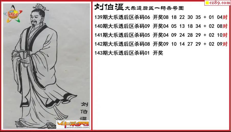 大乐透143期刘伯温后区一码杀号图
